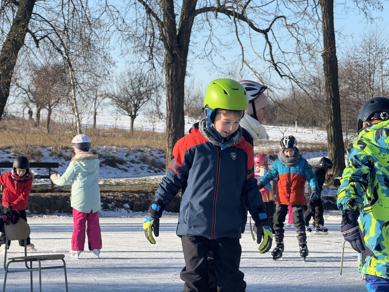 Bruslení za slunečného počasí a velká radost dětí.