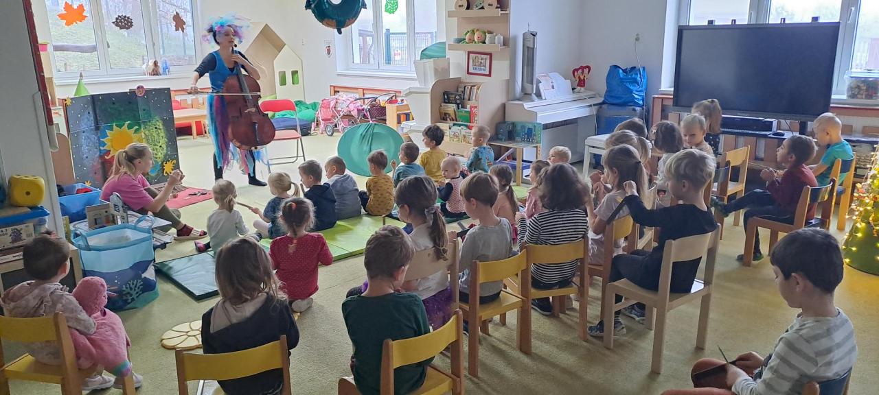 Divadelní představení s hudebními nástroji.