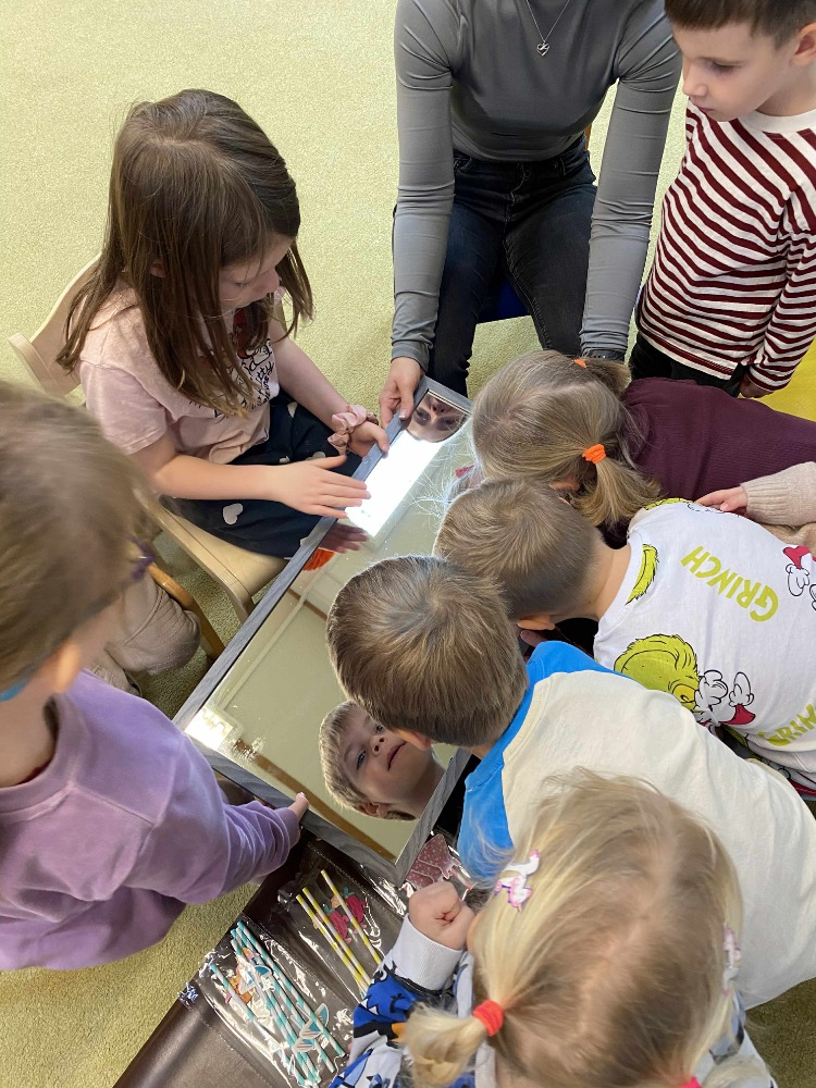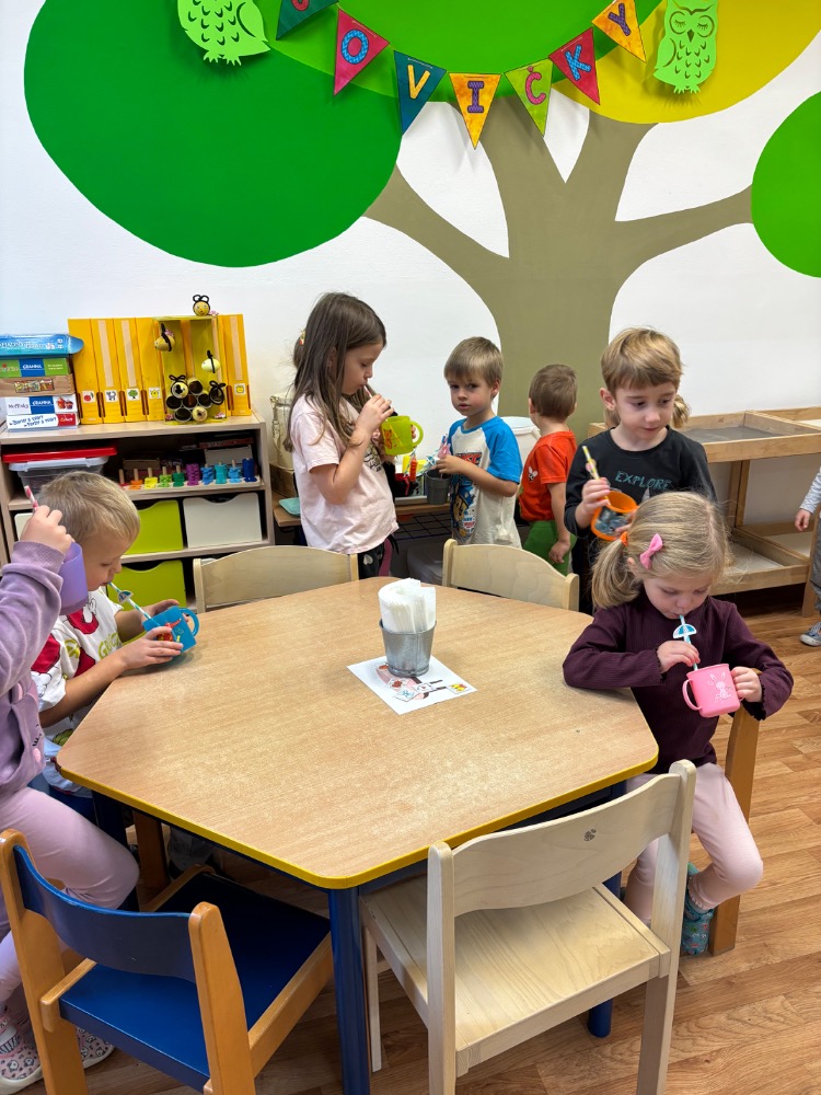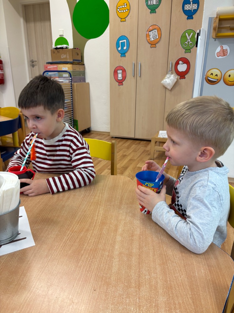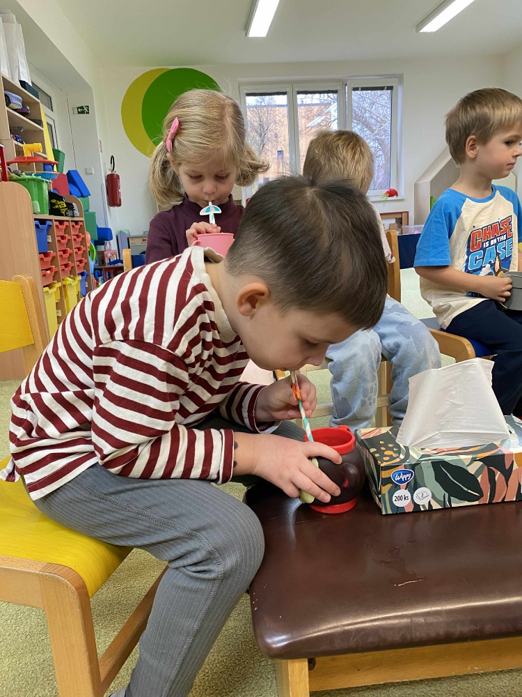 Zkoušeli jsme s dětmi foukat do bublifuku, pomocí brček jsme nasávali vodu, vyfukovali vzduch, mlžili dechem zrcadlo...