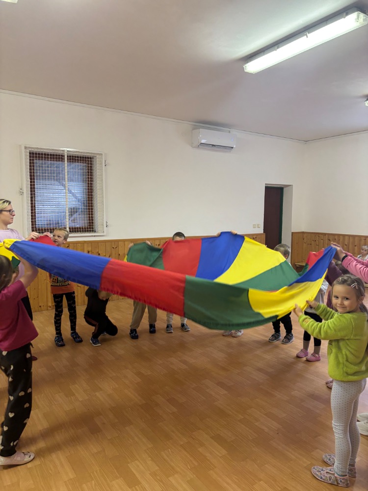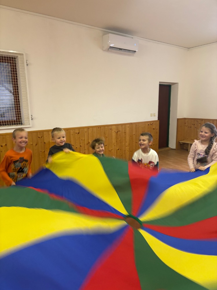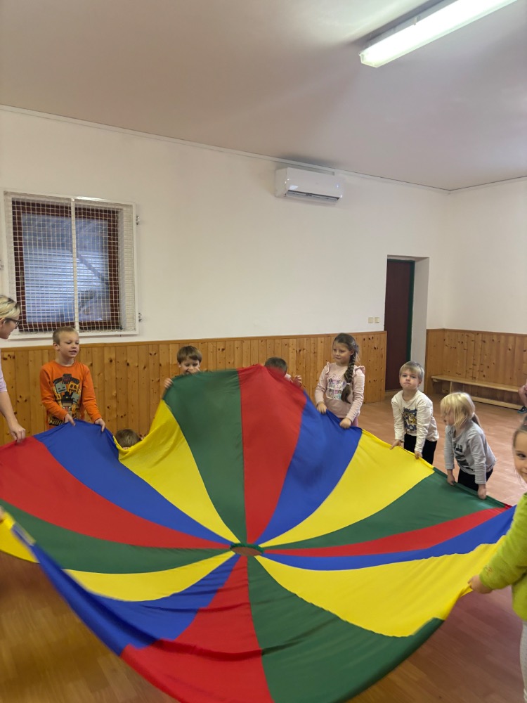 Hry v tělocvičně, cvičení na nářadí, cvičení ve dvojici, házení a chytání, hry s padákem, opičí dráha...