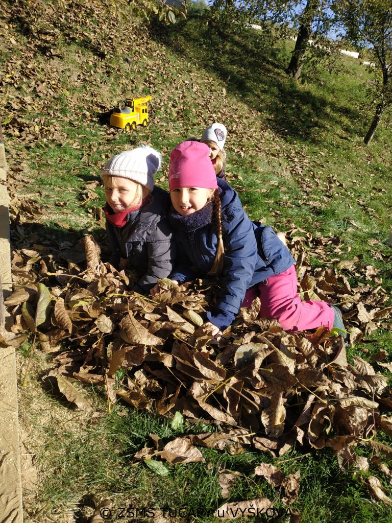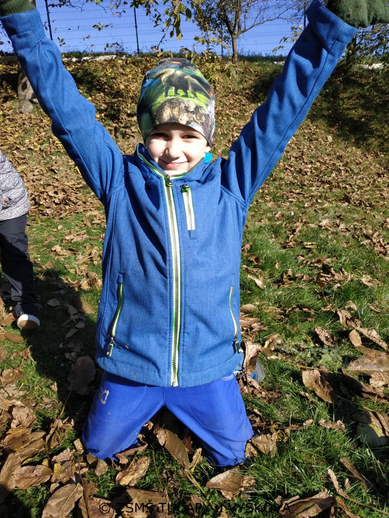 Hrajeme si s kaštany. Skákat do suchého listí a válet se v něm je taky super.