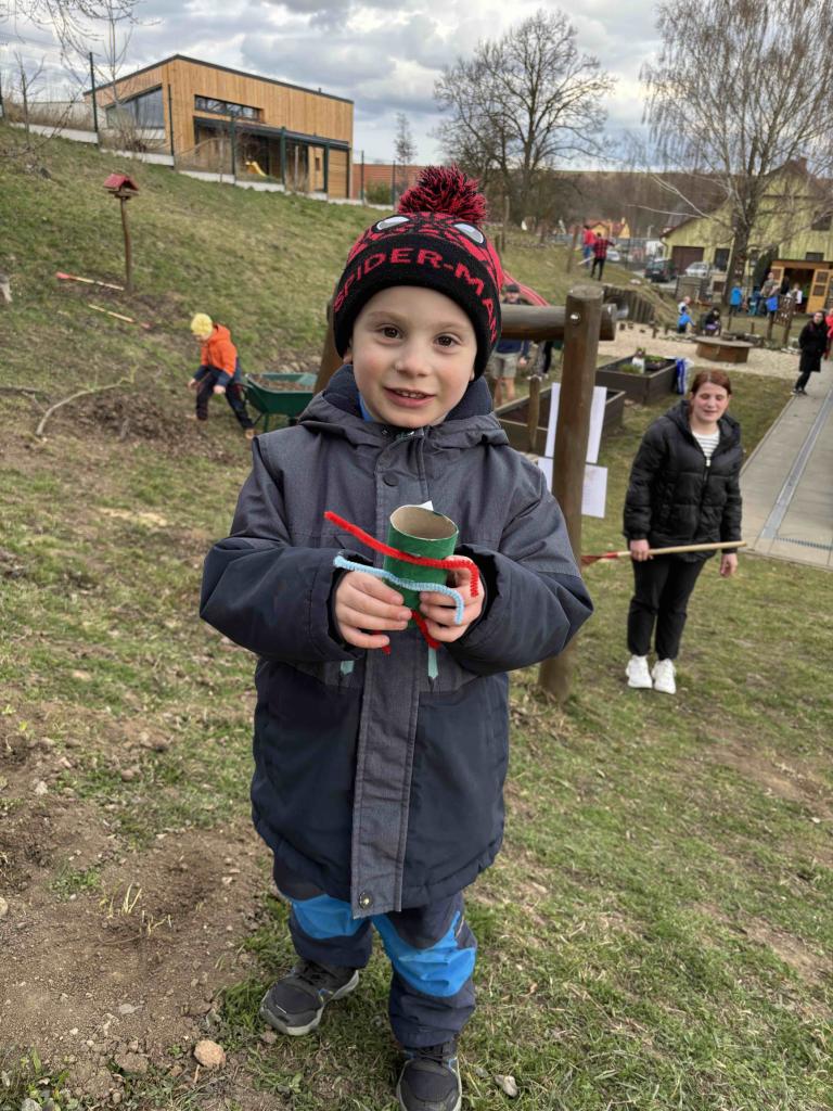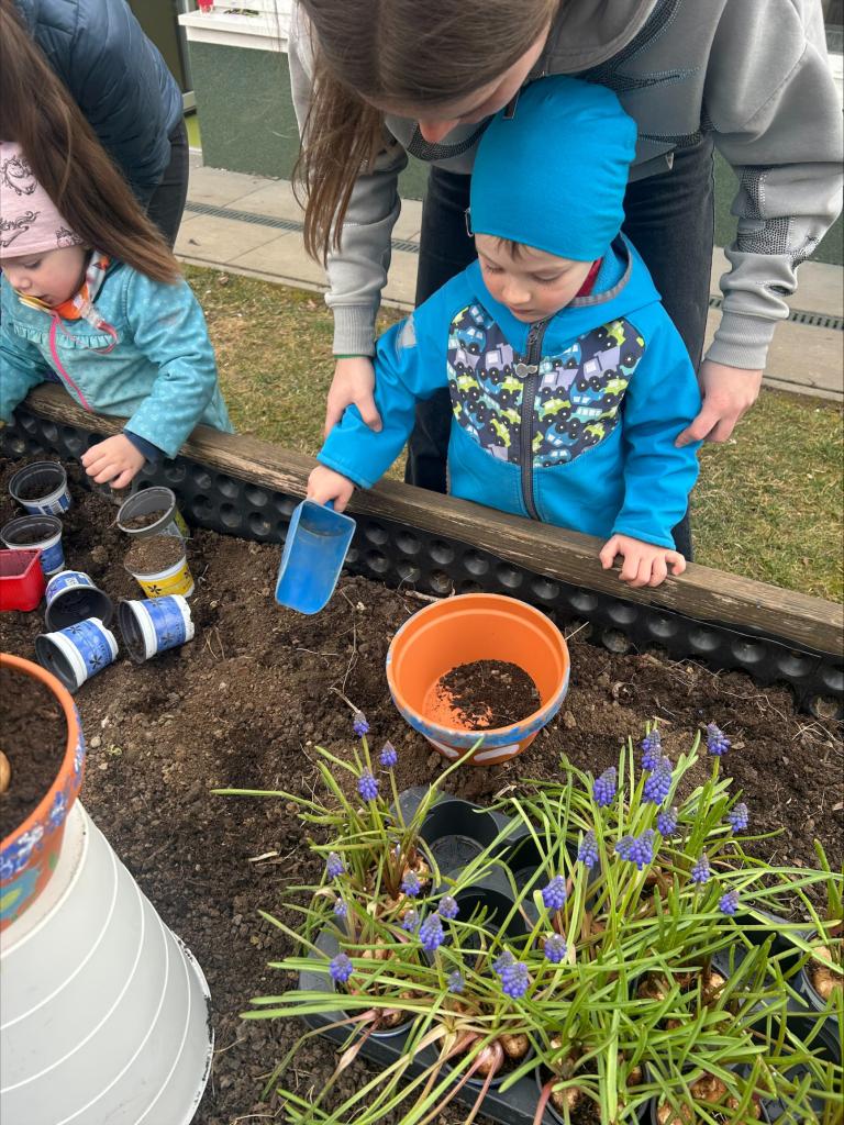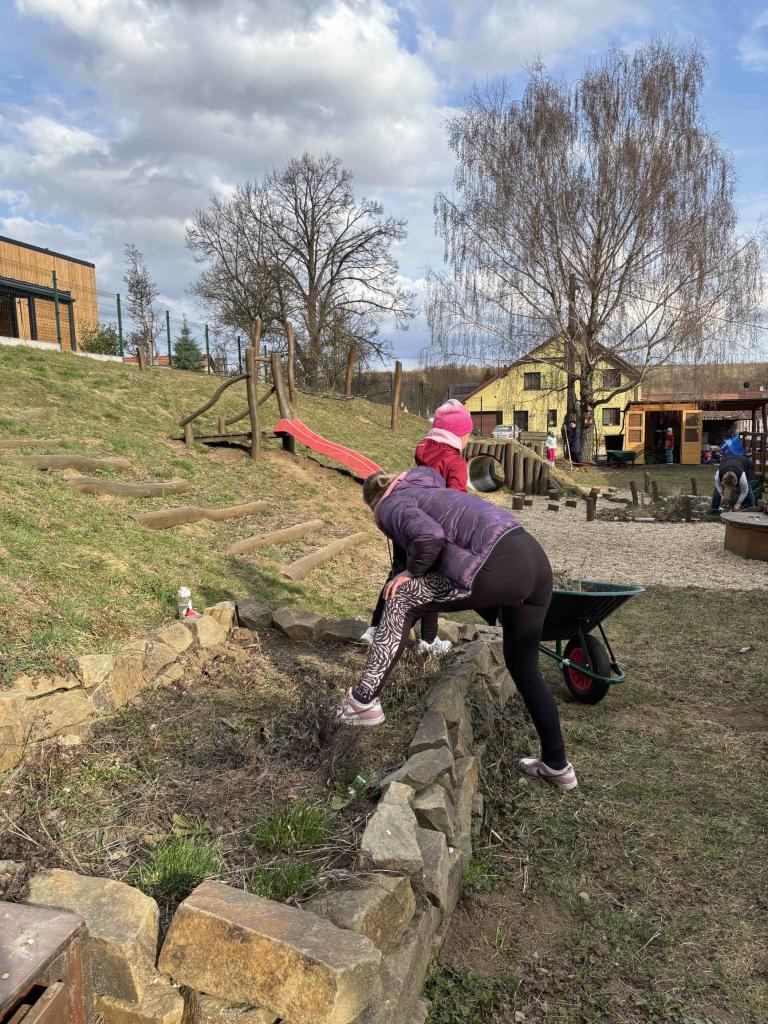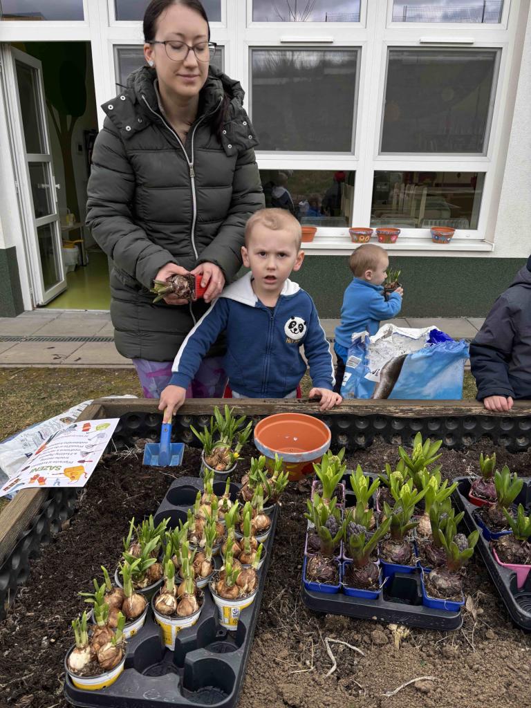 Velmi povedená akce na zahradě MŠ - Jarní zahradničení a probouzení broučků.