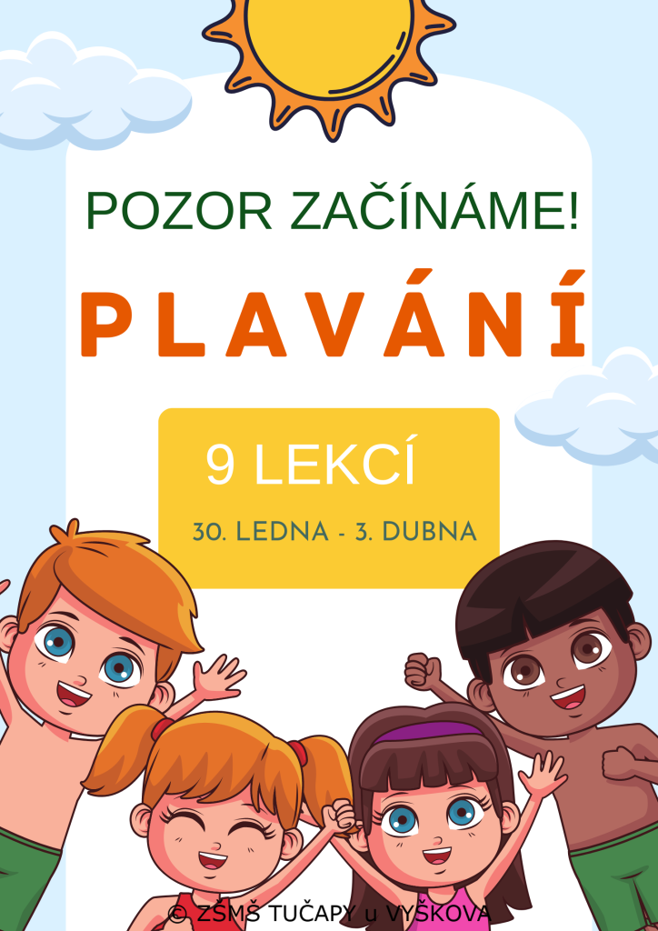 Plavecký výcvik žáků ZŠ Tučapy bude probíhat každé pondělí od 30.1.2023 do 3.4.2023.